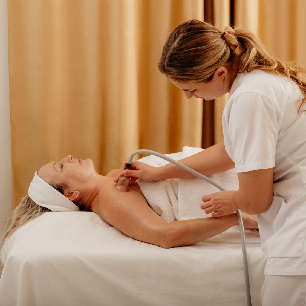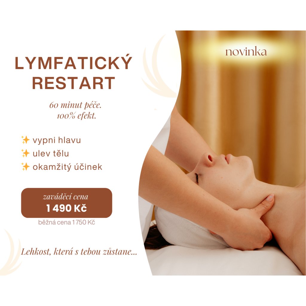 - 45 min manuální lymfatická masáž – zprůchodnění lymfatických cest, podpora odtoku tekutin a snížení otoků